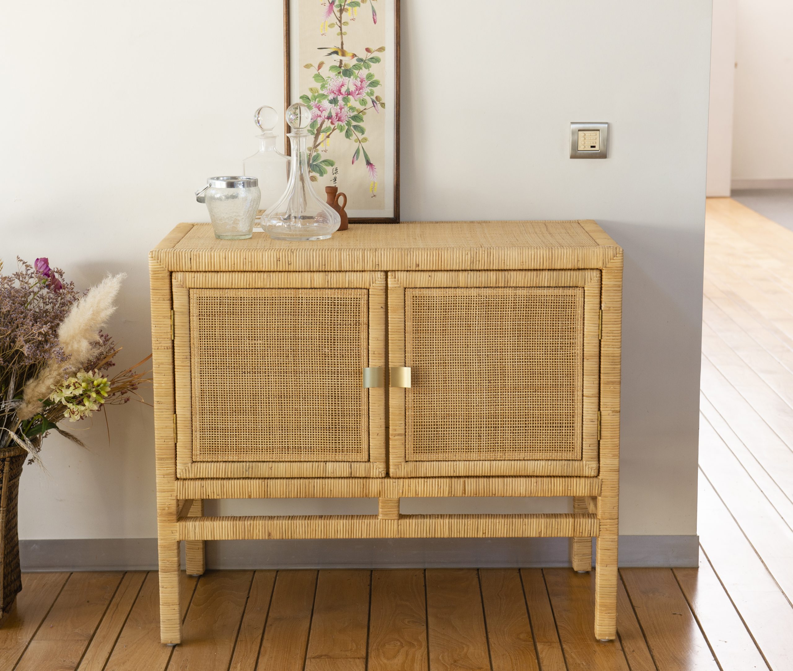 Avec son cannage ajouré et sa silhouette élancée, le buffet Saigon diffuse une atmosphère douce et lumineuse. Un meuble de rangement à la fois pratique et décoratif, parfait pour réchauffer les intérieurs contemporains avec une touche naturelle et authentique.