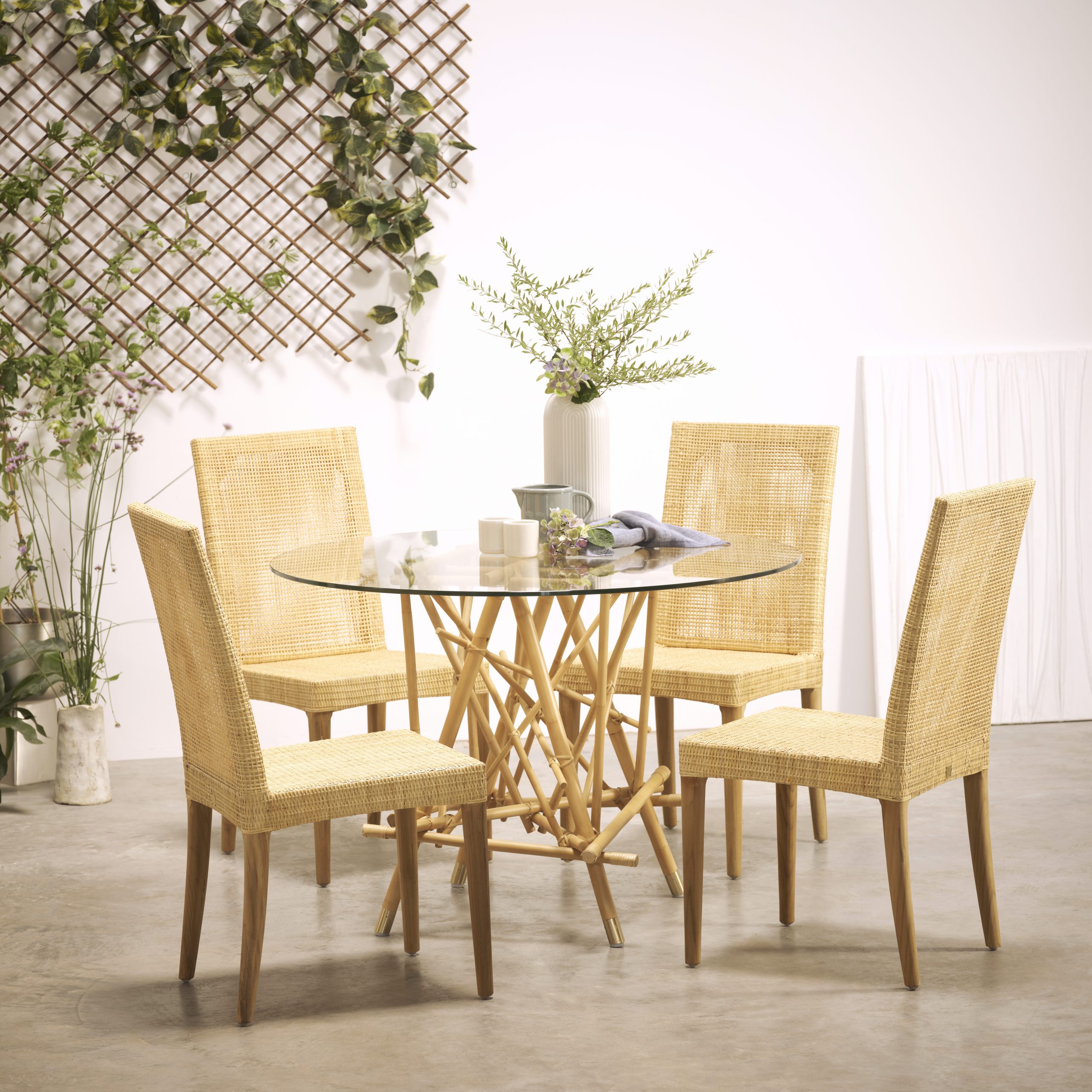 Avec son cannage délicat et sa structure en teck naturel, la chaise Saigon diffuse un charme rétro chic et apaisant. Une assise élégante et lumineuse, idéale pour créer une atmosphère douce, authentique et intemporelle dans la maison.