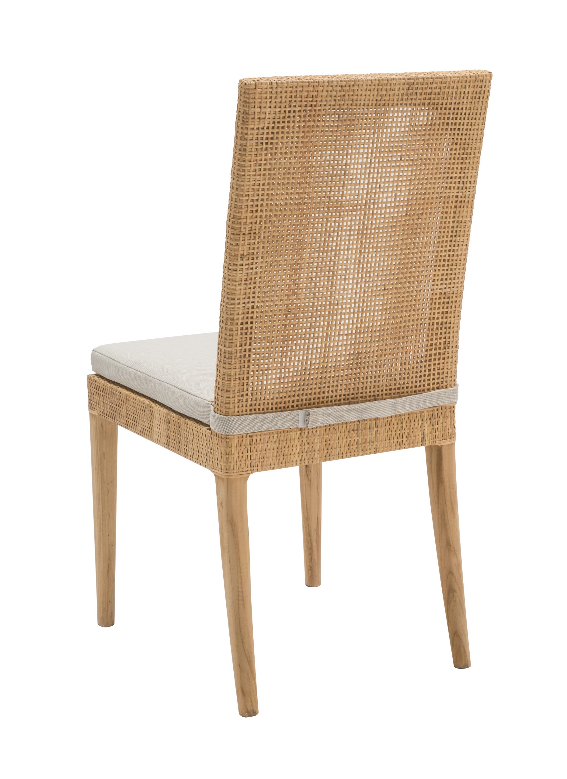 La chaise en rotin et teck Saigon séduit par la qualité de ses matériaux et la précision de son tissage. Le cannage, réalisé à partir de l’écorce naturelle de la canne de rotin soigneusement calibrée, révèle un motif régulier et aérien qui laisse circuler la lumière. Associé au teck, bois précieux reconnu pour sa stabilité et sa longévité, il donne naissance à une assise aussi élégante que durable. Chaque détail reflète un savoir-faire artisanal soigné, signature de la maison KOK MAISON.