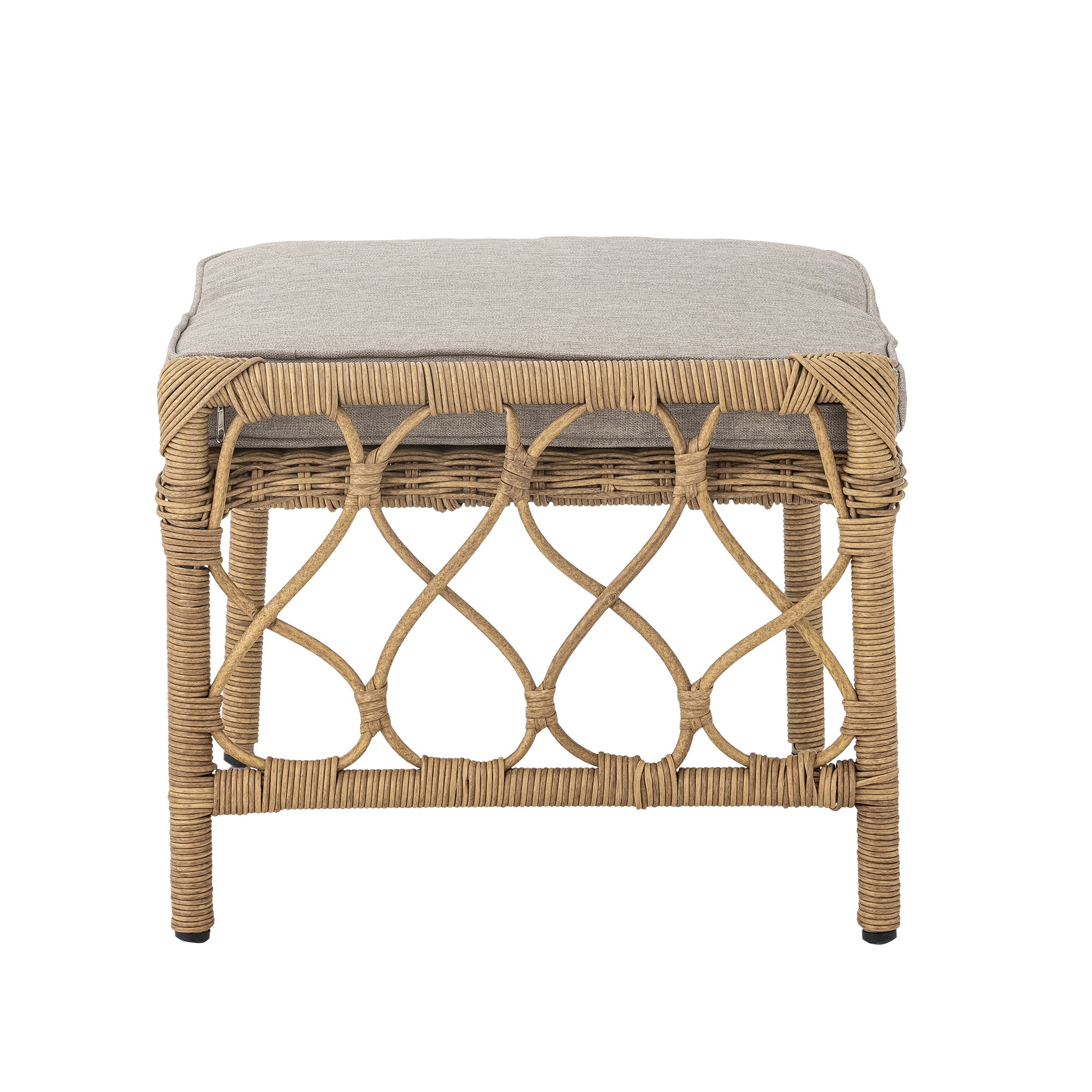Une chaise lounge en polyrattan accompagnée de son tabouret, idéale pour créer un coin détente chaleureux et naturel. Une assise confortable au style doux et intemporel, pensée pour les moments de pause.