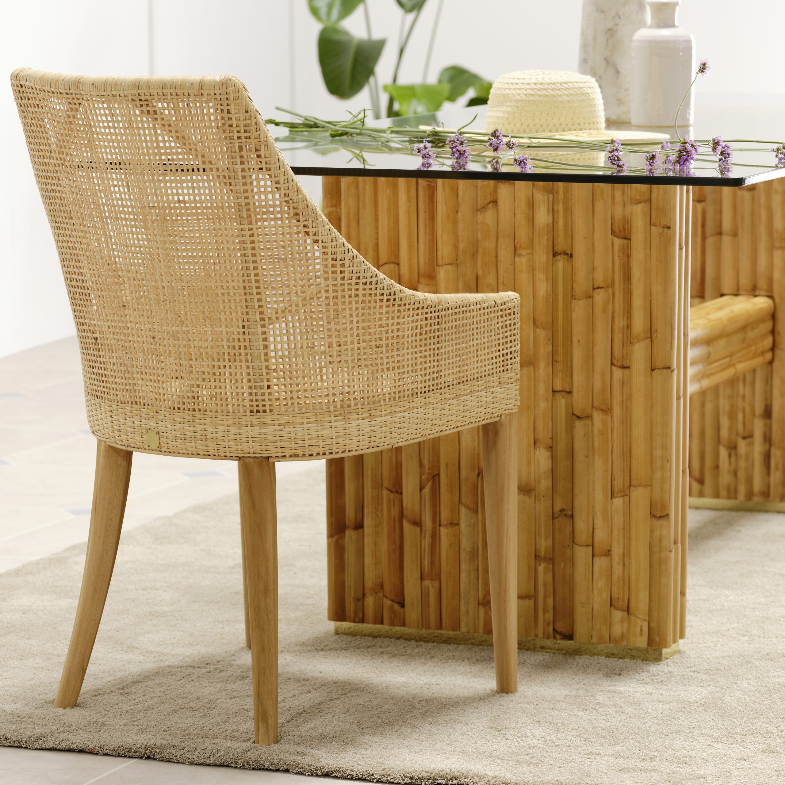 Le fauteuil de table en rotin cannage SAIGON séduit par l’équilibre subtil entre la chaleur du teck naturel et la légèreté d’un cannage ajouré en éclisse de rotin. Son dessin sobre, inspiré du mobilier asiatique traditionnel, apporte immédiatement une note authentique et élégante à la salle à manger ou à l’espace bureau.