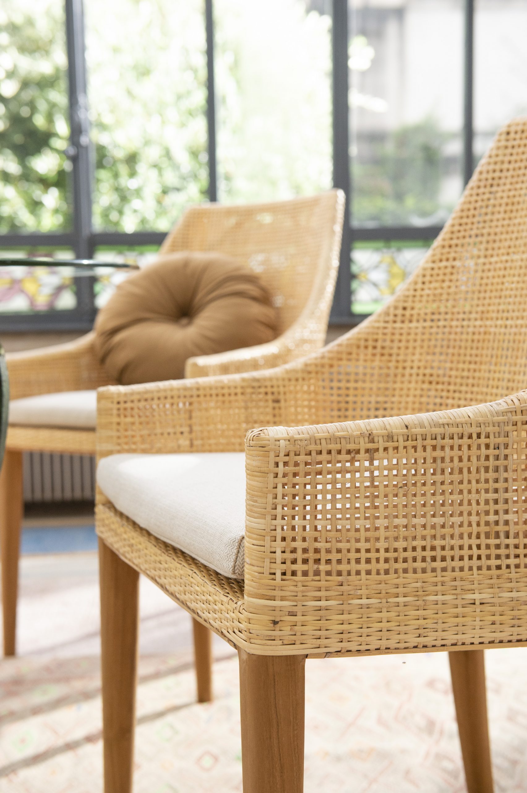 Chaque détail reflète un travail artisanal soigné : la structure en teck offre une assise stable et rassurante, tandis que le cannage laisse passer la lumière et allège visuellement la silhouette. Un fauteuil qui traverse les styles et s’intègre aussi bien dans un intérieur contemporain que dans une ambiance plus bohème ou naturelle.