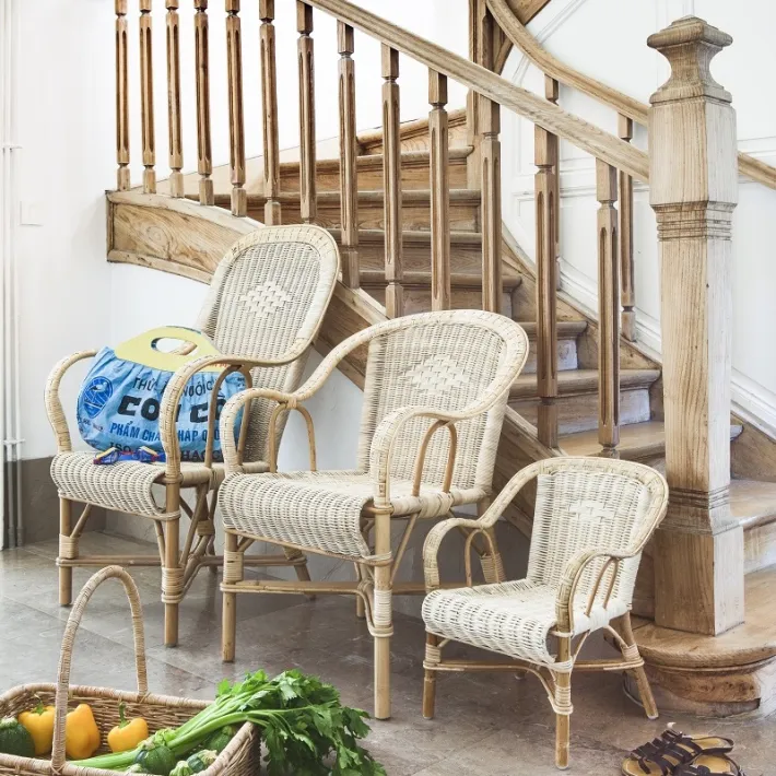 Le fauteuil en rotin haut dossier Marcel incarne à lui seul l’histoire du mobilier en rotin français. Présent depuis plus d’un siècle dans les maisons de ville comme à la campagne, il doit son surnom de fauteuil grand-père à cette silhouette familière, reconnaissable entre toutes, qui traverse les générations sans perdre de son charme.